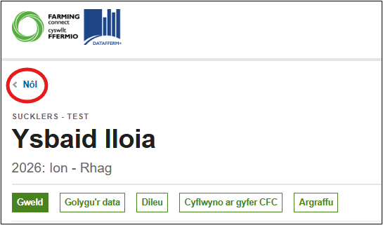 Os yw'n well gennych symud ymlaen i fenter wahanol neu edrych ar y DPA ar gyfer y Fferm gyfan, yna gallwch gael mynediad at y rhain ar y panel ar yr ochr chwith.