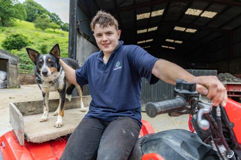 Siôn Einion Pearson, from Abercegir near Machynlleth is currently studying Agriculture at Newtown College. Sion has been involved in all aspects of farm work from a very young age and has developed a passion for sheep farming, particularly enjoying the lambing and shearing seasons. He also enjoys gathering sheep on the hills, working his own sheepdog, Meg.