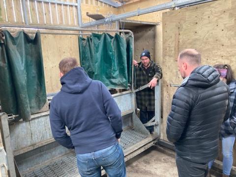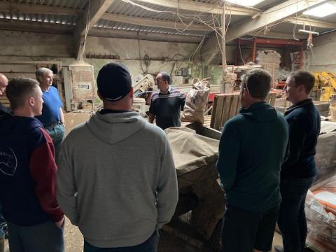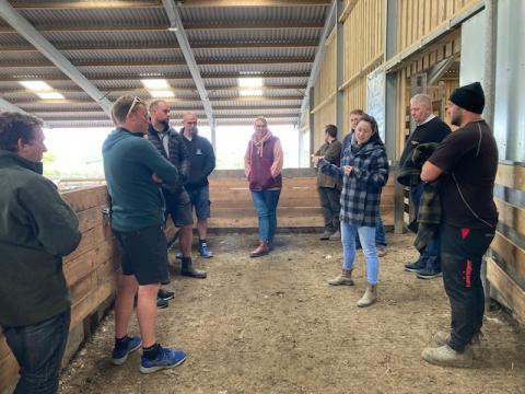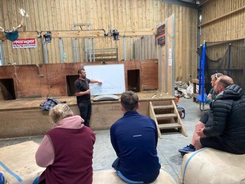 The group left the hotel at 9am and made the one-hour bus journey down to Trefranck Farm, where again a warm welcome was received from Matt and Pippa and their team. The group began their tour by having a presentation in Matt's self-built wool-handling shed about their farming system and what they are trying to achieve for future generations.