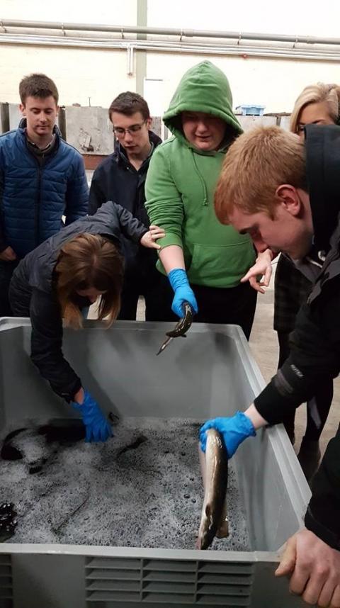 Dechreuodd y diwrnod gydag ymweliad i gwmni Lough Neagh Fishermans. Lough Neagh yw’r llyn mwyaf yng Ngogledd Iwerddon a chafodd y grŵp cyfle i wylio un neu ddwy long yn dod nôl i mewn o’r llyn gyda nifer o lysywod (eels) sef y pysgod yr oeddent yn pysgota o ddydd i ddydd. Er nad oes llawer o lysywod gael yn y gaeaf, roedd y pysgotwyr wedi mynd allan yr amser cywir gan iddynt ddal nifer fawr y diwrnod hynny. Cafwyd taith o amgylch y ffatri a chafodd y grŵp glywed hanes y lle yn ogystal â hanes y llysywod yn y llyn. Cafwyd sgwrs ynglŷn â’r dulliau yr oedden nhw’n eu defnyddio hefyd. Ar ddiwedd yr ymweliad cawsom gyfle i flasu’r pysgod. Dyma ymweliad gwerthfawr iawn gan nad oedd y math yma o fusnes yn gyfarwydd iawn i’r aelodau.