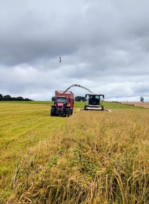 Bu’r ffermwr yn cynnal asesiadau gweledol drwy gydol y tymor tyfu nes cynaeafu’r cnwd ar 30 Gorffennaf i gynhyrchu cyfuniad o fyrnau a silwair i’r gladdfa. Cafodd y silwair cnwd cyflawn ei ddadansoddi i asesu ei ansawdd a’i fwydo i’r gwartheg dros y gaeaf, ynghyd â silwair glaswellt a haidd wedi’i rolio.