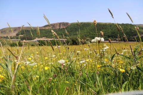 Glaswelltir sych lled-naturiol wedi'i amgáu (yn cael ei reoli fel porfa neu weirglodd)