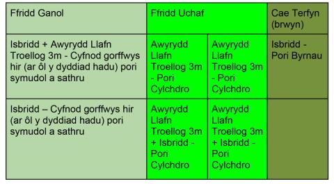 - Cynhelir y treial mewn tri chae, sef Ffridd Ganol (1.4ha), Ffridd Uchaf (1.4 ha) a Chae Terfyn (1.5 ha).