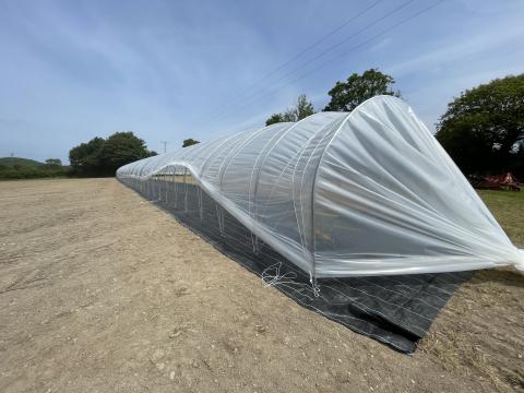 - Ar ddechrau'r arbrawf, nid oedd y tyfwyr wedi penderfynu a ddylid codi twneli polythen parhaol ar y safle newydd yn y tymor cychwynnol neu dwneli lindys. Gwnaethpwyd y penderfyniad i ddefnyddio twneli lindys i fod yn hyblyg (gweler y llun)