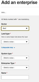 Efallai bod gennych fwy nag un fenter fesul sector, er enghraifft os oes gennych fwy nag un amrywiaeth o gnydau, os oes gennych fuches fasnachol a phedigri, neu os oes gennych 2 fuches laeth gyda phatrymau lloia gwahanol. Mae creu eich mentrau eich hun yn caniatáu i chi bersonoli'r adnodd i gyd-fynd â'r systemau ar eich fferm.