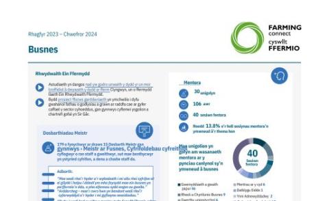 Mae'r dangosfwrdd hwn yn amlinellu gweithgaredd Mentro a chynhaliwyd ar draws rhaglen Cyswllt Ffermio rhwng Rhagfyr 2023 – Chwefror 2024