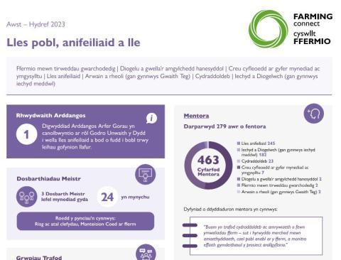 Mae'r dangosfwrdd hwn yn amlinellu gweithgaredd Mentro a chynhaliwyd ar draws rhaglen Cyswllt Ffermio rhwng Awst – Hydref 2023