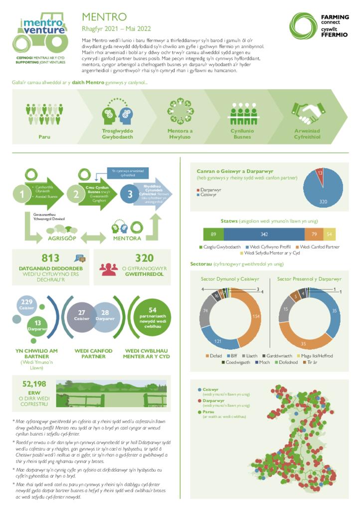 Mae'r dangosfwrdd hwn yn amlinellu gweithgaredd Mentro a chynhaliwyd ar draws rhaglen Cyswllt Ffermio rhwng Rhagfyr 2021 - Mai 2022