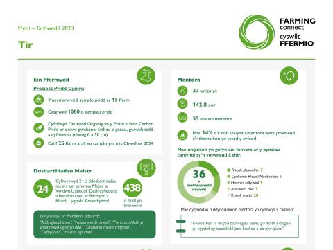 Mae'r dangosfwrdd hwn yn amlinellu gweithgaredd Mentro a chynhaliwyd ar draws rhaglen Cyswllt Ffermio rhwng Awst – Medi – Tachwedd 2023