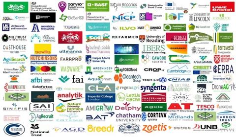 Logos cwmnïau a sefydliadau’r cyfranogwyr yn nigwyddiad AgriTech 4.0
