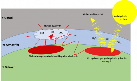 Ffigwr 2 Yr effaith tŷ gwydr a’r nwyon sy’n rhan ohoni