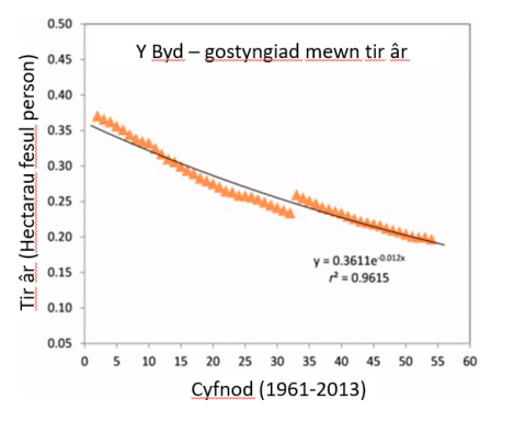 10 gwaith yn llai o dir |