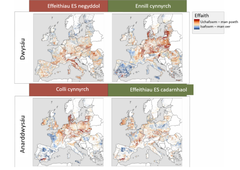Wedi’i gymryd o Felix et al. (2022) ystyr ES yw Ecosystem service (Gwasanaeth Ecosystem)