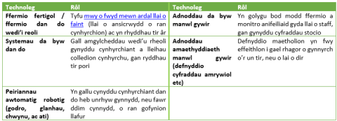 Mae rhai technolegau yn gorgyffwrdd â’r ddwy strategaeth, yn dibynnu ar y pwyslais a sut maent yn cael eu defnyddio.