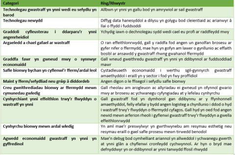 Trafodwyd risgiau a rhwystrau o ran gwastraff yn ynni eraill penodol yn fanwl mewn papur ar draws Ewrop a gynhyrchwyd yn 2021, ac maent yn cael eu crynhoi isod. Gallwch sylwi y gall llawer o’r ystyriaethau hyn fod yn berthnasol iawn i dechnolegau ynni adnewyddadwy eraill nad ydynt yn rhai gwastraff yn ynni.