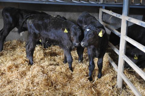 Mae Hugh Jones a'i fam, Glenys, sy'n ffermio yn Fferm Pentre, Pentrecelyn, yn prynu lloi gwryw Aberdeen Angus o Buitelaar ar gyfartaledd o 36 diwrnod, pan maen nhw'n pwyso 65-85kg.