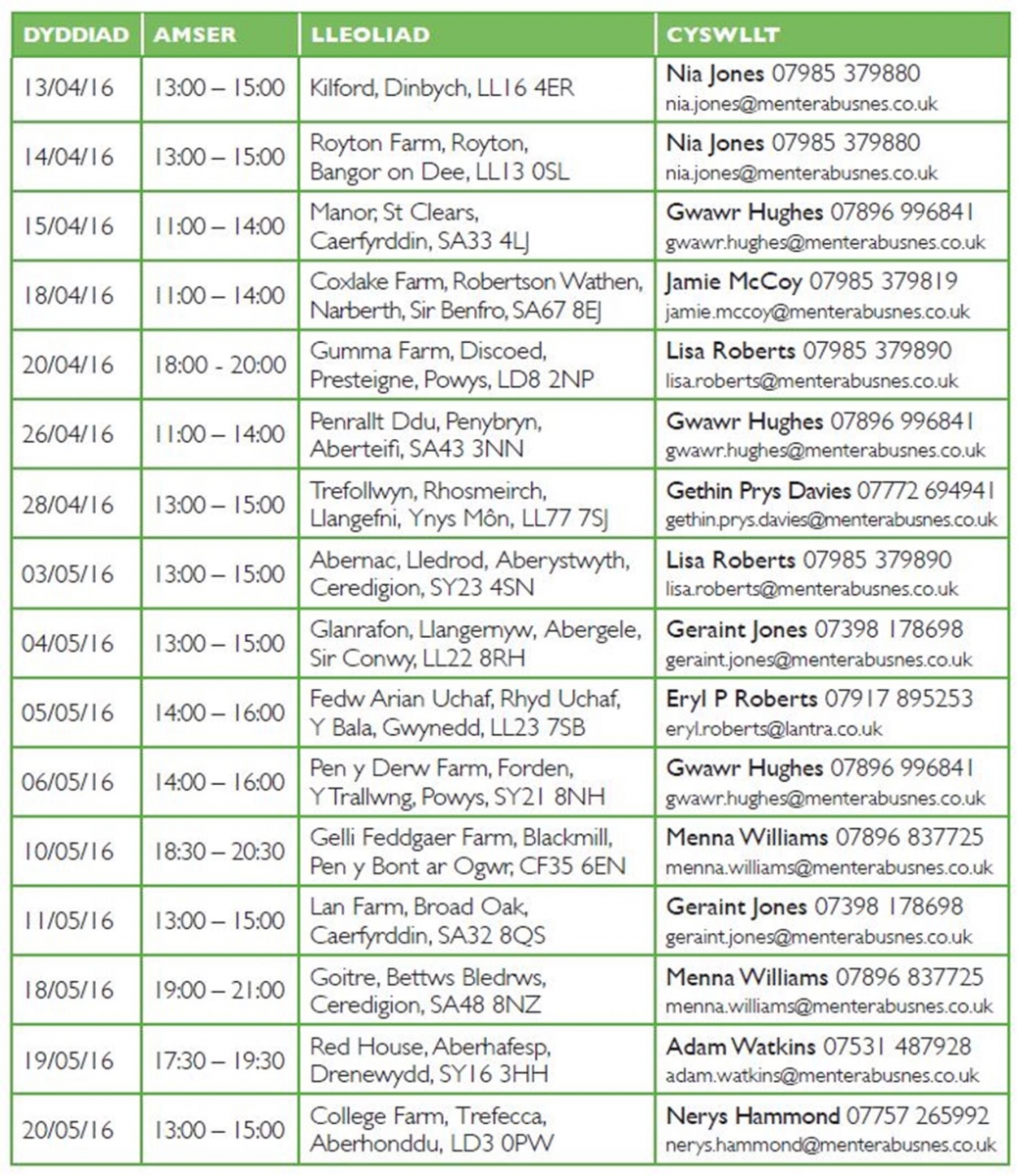 Am ddyddiadau a lleoliadau yn eich hardal chi, gweler yr wybodaeth isod: