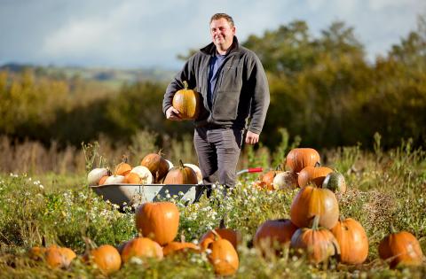 Mae Andy Matthews, sy'n ffermio 600 erw yn Aberbran Fawr, ger Aberhonddu wedi bod yn brysur yn paratoi cnwd o tua 5,000 o bwmpenni y tymor hwn, ar gyfer y farchnad Calan Gaeaf broffidiol ddiwedd y mis hwn. Fodd bynnag, mae cyfyngiadau Covid 19 wedi effeithio ar hyd y tymor, ond drwy addasu i'r amgylchiadau, bu’r gwerthiant yn dda yn ystod y cyfnod yn arwain at y cyfyngiadau wrth i deuluoedd fynd ati’n gynnar i gynllunio eu dathliadau gartref.