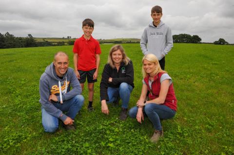 Yn ogystal ag ailgyflwyno erfin yn y cylchdro, mae’r teulu Jones wedi bod yn cynyddu swm y protein y maent yn ei gynhyrchu hefyd, trwy dyfu 2.4 hectar (ha) o feillion coch a hefyd, hau meillion gwyn trwy 'bwytho' yn eu gwyndwn porfa.