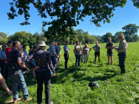 “Mae llawer o ffermwyr yn defnyddio glyffosad yn aneffeithlon,” meddai Mr Dunne, siaradwr yn nigwyddiad Cyswllt Ffermio yn fferm Glanmynys. “Os nad oes digon o arwynebedd dail, ni fydd y borfa yn gallu cymryd digon o gynnyrch i'w lladd.''
