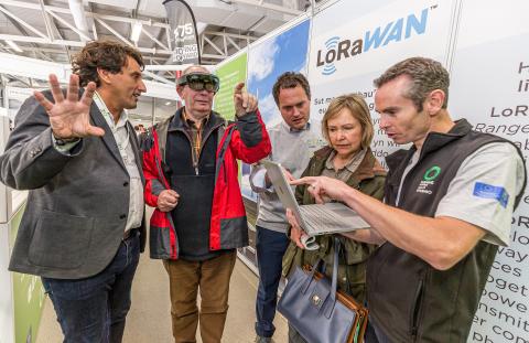 Bu Daniel Sumner, cyfarwyddwr 'byd-eang' cwmni Microsoft yn Seattle, ac a anwyd ar Ynys Môn, yn sôn wrth ei gynulleidfa astud am 'Ryngrwyd y Pethau', gwerth gwybodaeth artiffisial a'r Cwmwl, gan esbonio sut y mae angen i deuluoedd amaethyddol a chymunedau gwledig groesawu'r technolegau newydd hygyrch hyn er mwyn rhedeg busnesau mwy effeithlon a chystadlu mewn marchnad fyd-eang.