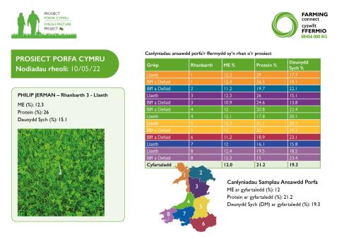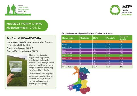 Fel rhan o’r prosiect, bydd 16 o ffermwyr bîff, defaid a/neu laeth o wahanol ranbarthau yng Nghymru yn cymryd samplau ansawdd porfa yn fisol, ynghyd â lluniau o’r borfa i ddarparu meincnod i eraill bennu ansawdd y borfa bosib ar eu fferm.