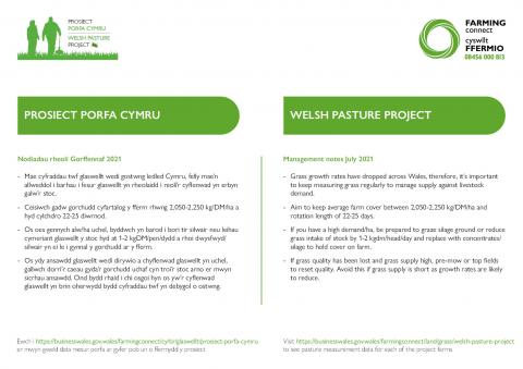 Tyfiant rhanbarthol Prosiect Porfa Cymru 27/07/2021 a nodiadau rheoli pori mis Awst.