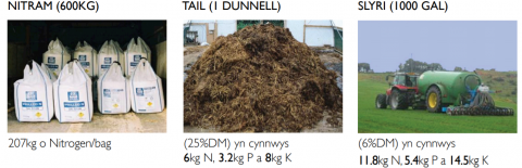 o’r Llawlyfr Gwrtaith (RB209): mae’n syniad da dadansoddi eich tail a slyri i gadarnhau’r cynnwys o ran