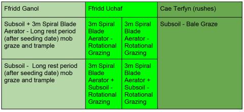 • The trial is run in three fields Ffridd Ganol (1.4ha), Ffridd Uchaf (1.4 ha) and Cae Terfyn 1.5 ha.