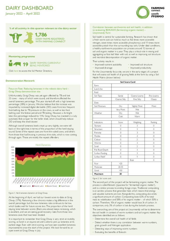 This dashboard outlines key dairy activity undertaken across the Farming Connect programme between January - April 2022.