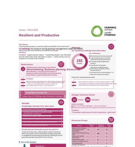 This dashboard outlines business key activity undertaken across the Farming Connect programme between January – March 2024