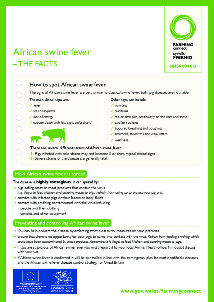 African swine fever – THE FACTS 10/07/2018 Type Factsheets Key Sector Pigs Theme Livestock cff_africanswinefever.pdf [.PDF, 371.58 KB] Related News and Events 8 September 2025 Livestock Genetic Improvement To Reduce Ghg Emissions Type: Factsheets Key Sector: Arable, Beef, Dairy, Mixed, Poultry, Sheep Theme: Business, Livestock 4 September 2025 Thinking About Regenerative Farming Type: Factsheets Key Sector: Arable, Beef, Dairy, Mixed, Poultry, Sheep Theme: Business, Land, Livestock Key Specialism: Regenerative Farming 4 September 2025 Plant Passports Type: Factsheets Key Sector: Horticulture Theme: Land More News and Events