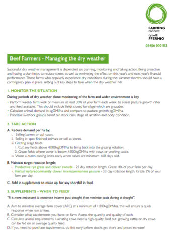 Beef Farmers - Managing the dry weather - 27/08/2020 Type Factsheets Key Sector Beef Theme Land, Livestock Beef Farmers - Managing the dry weather.pdf [.PDF, 400.62 KB] Related News and Events 8 September 2025 Livestock Genetic Improvement To Reduce Ghg Emissions Type: Factsheets Key Sector: Arable, Beef, Dairy, Mixed, Poultry, Sheep Theme: Business, Livestock 4 September 2025 Thinking About Regenerative Farming Type: Factsheets Key Sector: Arable, Beef, Dairy, Mixed, Poultry, Sheep Theme: Business, Land, Livestock Key Specialism: Regenerative Farming 4 September 2025 Plant Passports Type: Factsheets Key Sector: Horticulture Theme: Land More News and Events