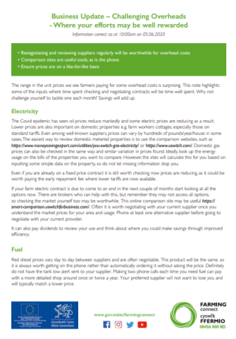 Business Update – Challenging Overheads - Where your efforts may be well rewarded - 19/06/2020 Type Factsheets Theme Business Business Update – Challenging Overheads.pdf [.PDF, 232.74 KB] Related News and Events 8 September 2025 Livestock Genetic Improvement To Reduce Ghg Emissions Type: Factsheets Key Sector: Arable, Beef, Dairy, Mixed, Poultry, Sheep Theme: Business, Livestock 4 September 2025 Thinking About Regenerative Farming Type: Factsheets Key Sector: Arable, Beef, Dairy, Mixed, Poultry, Sheep Theme: Business, Land, Livestock Key Specialism: Regenerative Farming 4 September 2025 Plant Passports Type: Factsheets Key Sector: Horticulture Theme: Land More News and Events