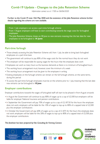 Covid-19 Update - Changes to the Jobs Retention Scheme - 19/06/2020 Type Factsheets Theme Business Covid-19 Update - Changes to the Jobs Retention Scheme.pdf [.PDF, 153.44 KB] Related News and Events 8 September 2025 Livestock Genetic Improvement To Reduce Ghg Emissions Type: Factsheets Key Sector: Arable, Beef, Dairy, Mixed, Poultry, Sheep Theme: Business, Livestock 4 September 2025 Thinking About Regenerative Farming Type: Factsheets Key Sector: Arable, Beef, Dairy, Mixed, Poultry, Sheep Theme: Business, Land, Livestock Key Specialism: Regenerative Farming 4 September 2025 Plant Passports Type: Factsheets Key Sector: Horticulture Theme: Land More News and Events