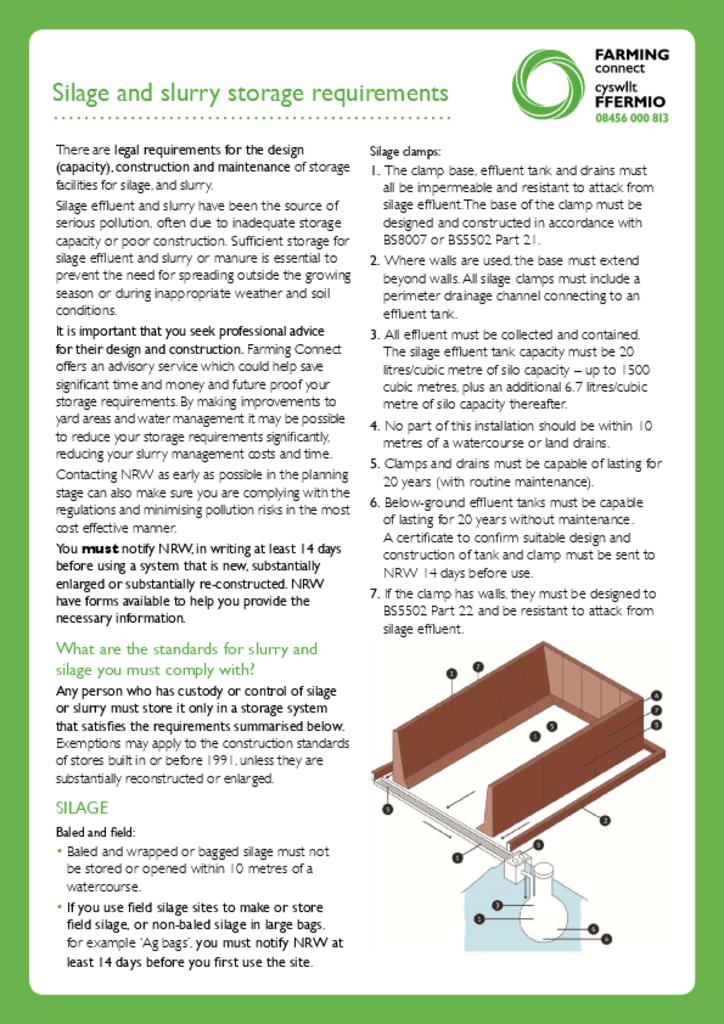 Silage and slurry storage requirements 16/10/2017 Type Factsheets Theme Land cff_ssafo_1.pdf [.PDF, 361.62 KB] Related News and Events 8 September 2025 Livestock Genetic Improvement To Reduce Ghg Emissions Type: Factsheets Key Sector: Arable, Beef, Dairy, Mixed, Poultry, Sheep Theme: Business, Livestock 4 September 2025 Thinking About Regenerative Farming Type: Factsheets Key Sector: Arable, Beef, Dairy, Mixed, Poultry, Sheep Theme: Business, Land, Livestock Key Specialism: Regenerative Farming 4 September 2025 Plant Passports Type: Factsheets Key Sector: Horticulture Theme: Land More News and Events