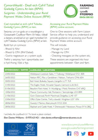 One to One sessions with Farm Liaison Service officer to help you understand and provide guidance on accessing your Rural Payment Wales online account.