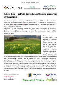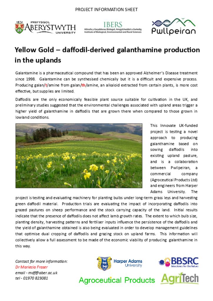 Yellow Gold - daffodil-derived galanthamine production in the uplands 06/02/2018 Type Factsheets Key Sector Horticulture yellow_gold_-_pwllpeiran_factsheets.pdf [.PDF, 1.43 MB] Related News and Events 8 September 2025 Livestock Genetic Improvement To Reduce Ghg Emissions Type: Factsheets Key Sector: Arable, Beef, Dairy, Mixed, Poultry, Sheep Theme: Business, Livestock 4 September 2025 Thinking About Regenerative Farming Type: Factsheets Key Sector: Arable, Beef, Dairy, Mixed, Poultry, Sheep Theme: Business, Land, Livestock Key Specialism: Regenerative Farming 4 September 2025 Plant Passports Type: Factsheets Key Sector: Horticulture Theme: Land More News and Events
