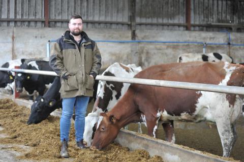 The milking cow ration is 27kg maize silage, 17kg grass silage and 8.5kg blend