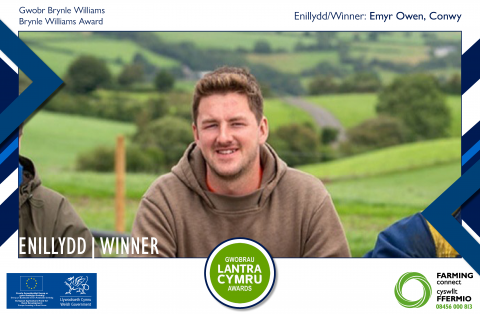 The judging panel said that Emyr had demonstrated drive, ambition and focus and is a worthy winner of this year’s Brynle Williams Memorial Award.