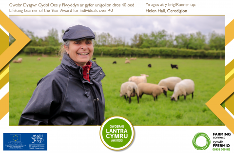 Helen Hall is a new entrant to farming who runs a sheep enterprise in Rhydlewis, Ceredigion. Helen has undertaken not only numerous accredited short courses but every e-learning course on sheep health and husbandry available through Farming Connect.