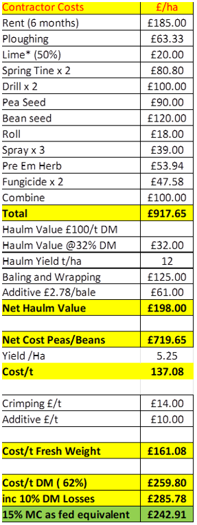 The Joneses considered growing single crops of beans or lupins, but felt that yields could be improved significantly by bi-cropping beans and peas and crimping them. This allowed for storage in an outside clamp, with the feed processed at harvest, clamped and ready for feeding out in the winter.
