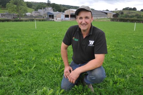 Aled and Dylan Jones and their father, Emyr, have been growing multi-species leys rich in legumes and herbs to fatten lambs from their 1500-ewe flock at Fferm Rhiwaedog, Bala.