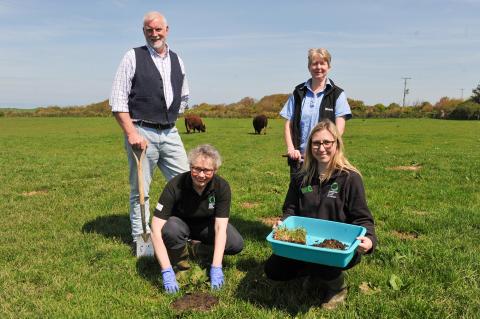 The other two trial sites are a field of perennial ryegrass and white clover used for haylage and a cliff-top field that is an SSSI and only lightly grazed by ponies.