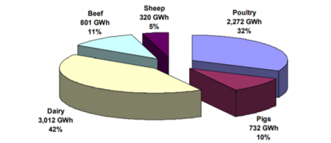 Levels of GHG production also vary depending on livestock being farmed. A significant UK study of the energy consumption per sector was performed in 2007. This suggested that within each sector; poultry egg/meat production, pig production and dairy farming (figure 1), significant energy was required for lighting, ventilating and heating buildings. Dairy building-related energy inputs were further increased by energy requirements for cooling milk, heating water and operating milking machinery. The majority of energy consumption across beef and lamb production, however, was related to oils/diesel used for field operations or pasture maintenance and feeding.