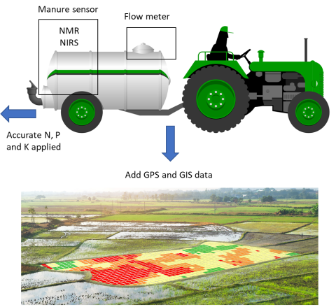 Colorimeter technologies (which measure light reflectance and absorbances) can determine N, P and K elements quickly and cost-effectively in soils with variable success. If such technologies can be further refined they could be transferred and calibrated for slurry in the future with potentially lower costs associated. Once nutrient profiles of slurries are understood the correct application on fields can also be bolstered by technologies. Variable-rate technologies (VRTs), whilst often more familiar for systems applying synthetic fertilisers, can also be a powerful tool in slurry spreading. Having a system linked to GPS and pre-mapped nutrient-poor and rich zones can allow automatic control of spreader flow rates.