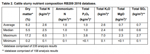 Nutrient contents of slurries are key to their management as organic fertiliser sources. Where correctly applied slurry can benefit plant productivity massively. Whilst nutrient contents of different organic materials have been researched and are available to interpret (RB209), due to the variable nature of farming these calculations are estimates and can detract from highly accurate application. Management practices such as diet, bedding system and cleaning systems can all affect the waste composition, such as aspects of feed like high cereal concentrates which will increase phosphate more than potash slurry output. Furthermore, total nitrogen (N) content has been shown to vary between 0.1 kg/m3 to 6.5 kg/m3 across UK cattle slurries tested. It is therefore essential that individual farms and growers have their organic materials and slurries tested, for example, via rapid on-farm kits, such as Agros, Quantofix and others, which tend to assess dry matter (DM) and N values utilising hydrometers, electrical conductivity and reflectometers with a range of accuracy. Ideally samples should be sent for accurate laboratory analysis as kit tests can be skewed by abnormally low or high %(DM) values whilst lab tests can determine a full spectrum of qualities including DM, organic matter, potash, sulphur, total nitrogen, phosphates and potassium (K). Even with analysis, it’s important to consider the variability of nutrient content across a single slurry store due to settlement and crusting which can make sample collection an important aspect via correct mixing and agitation.