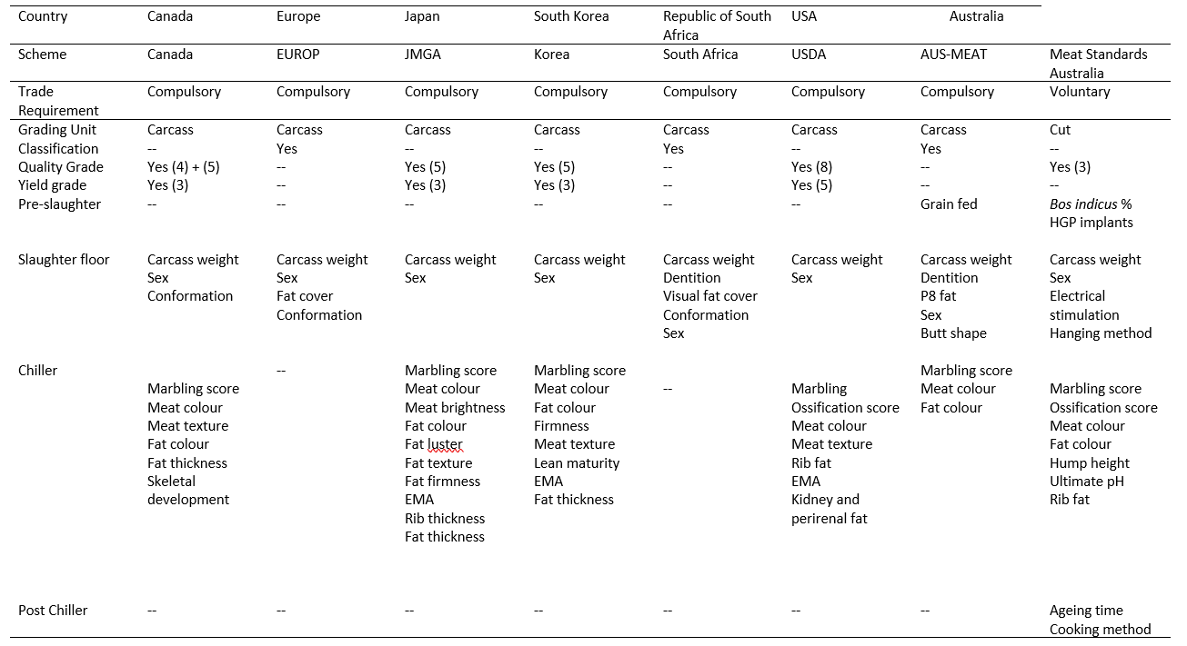 Table 1. Principal components of selected beef classification and grading schemes in selected countries around the world (Adopted from Polkinghorne and Thompson, 2010)