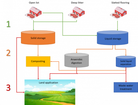 There are several routes through which GHGs may be produced in manure:
