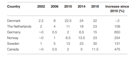 Table 1. RMS adoption rates (% of total dairy farms in each country, rounded to nearest 0.5%) taken from Eastwood and Renwick 2020 paper